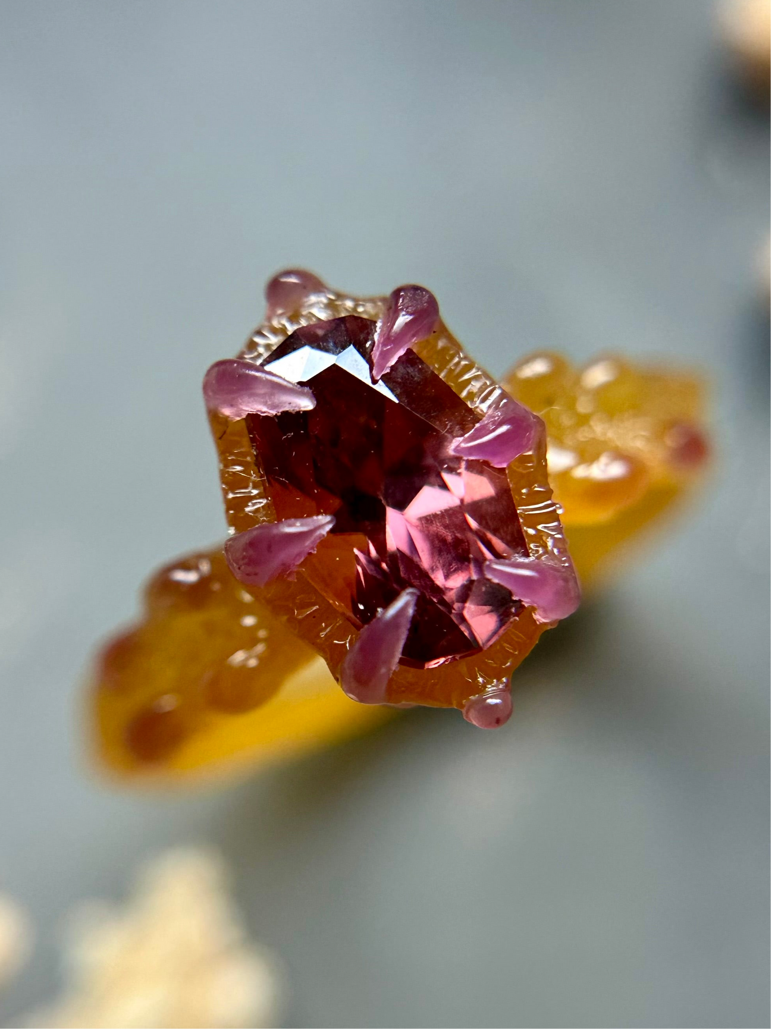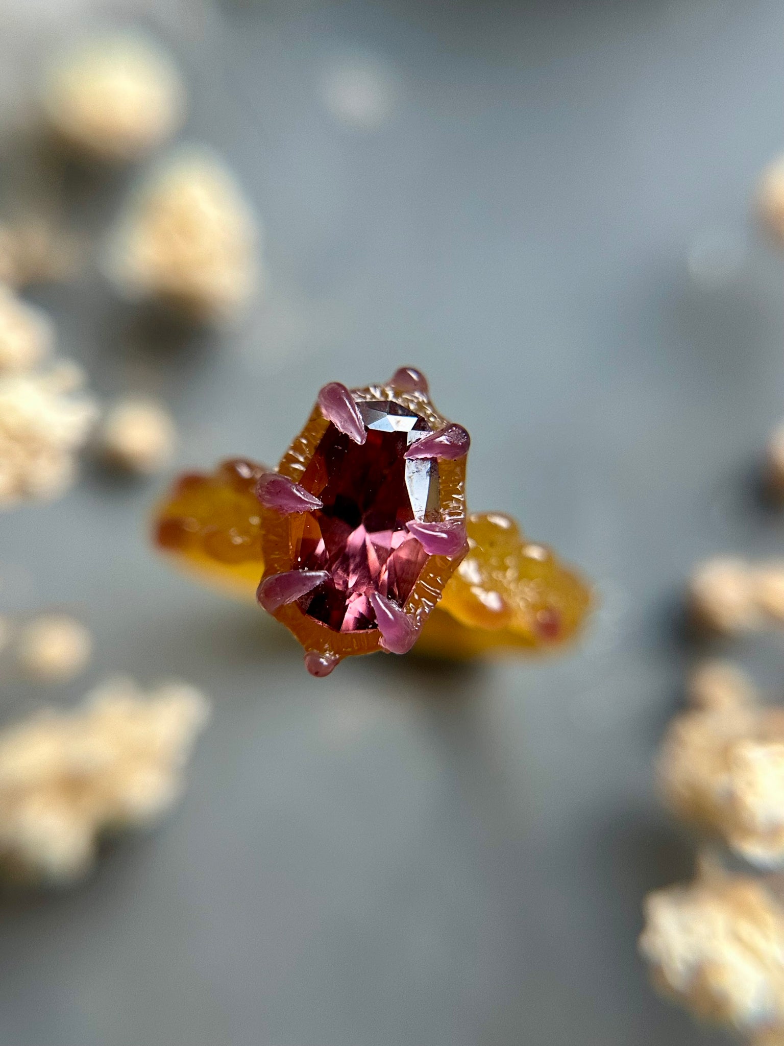 This bespoke creation will feature a 2.1 carat natural pink champagne Zircon, glowing with warm golden-rose tones and exceptional brilliance. Zircon is one of the earth’s oldest known gemstones — revered for its grounding, centering energy and remarkable sparkle, often rivaling diamond in its fire.
