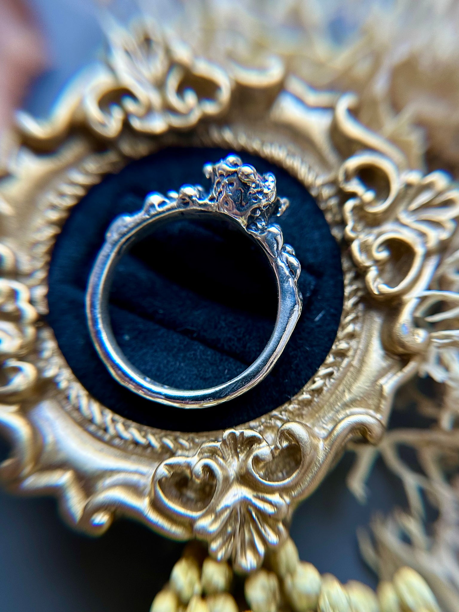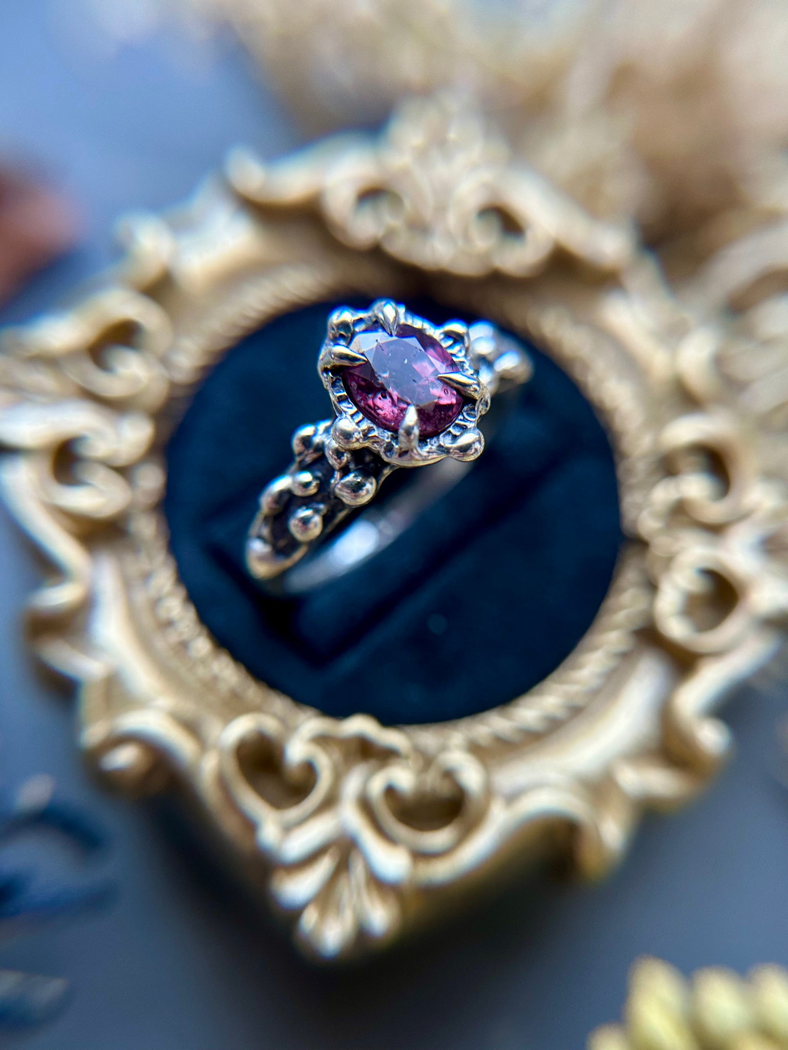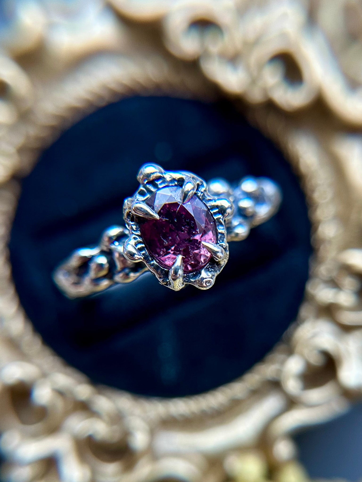 This radiant ring showcases a natural, unheated ruby set in solid sterling silver. Each piece is hand-carved in wax and created using the ancient lost wax casting technique, then cast right here in my home studio. The organic textures and flowing lines make every ring one of a kind. The ruby is carefully set by my husband, completing a truly handcrafted piece made with intention and care from start to finish.