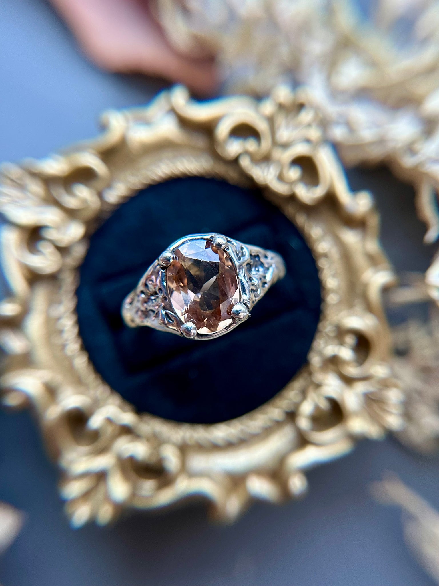 This one-of-a-kind ring features a shimmering zircon set in solid sterling silver. Each piece is hand-carved in wax and cast right here in my home studio using the traditional lost wax casting technique, a process that ensures every detail and organic texture is truly unique. The result is a beautifully crafted, artisanal ring with a natural, sculptural feel — no two are ever alike.
