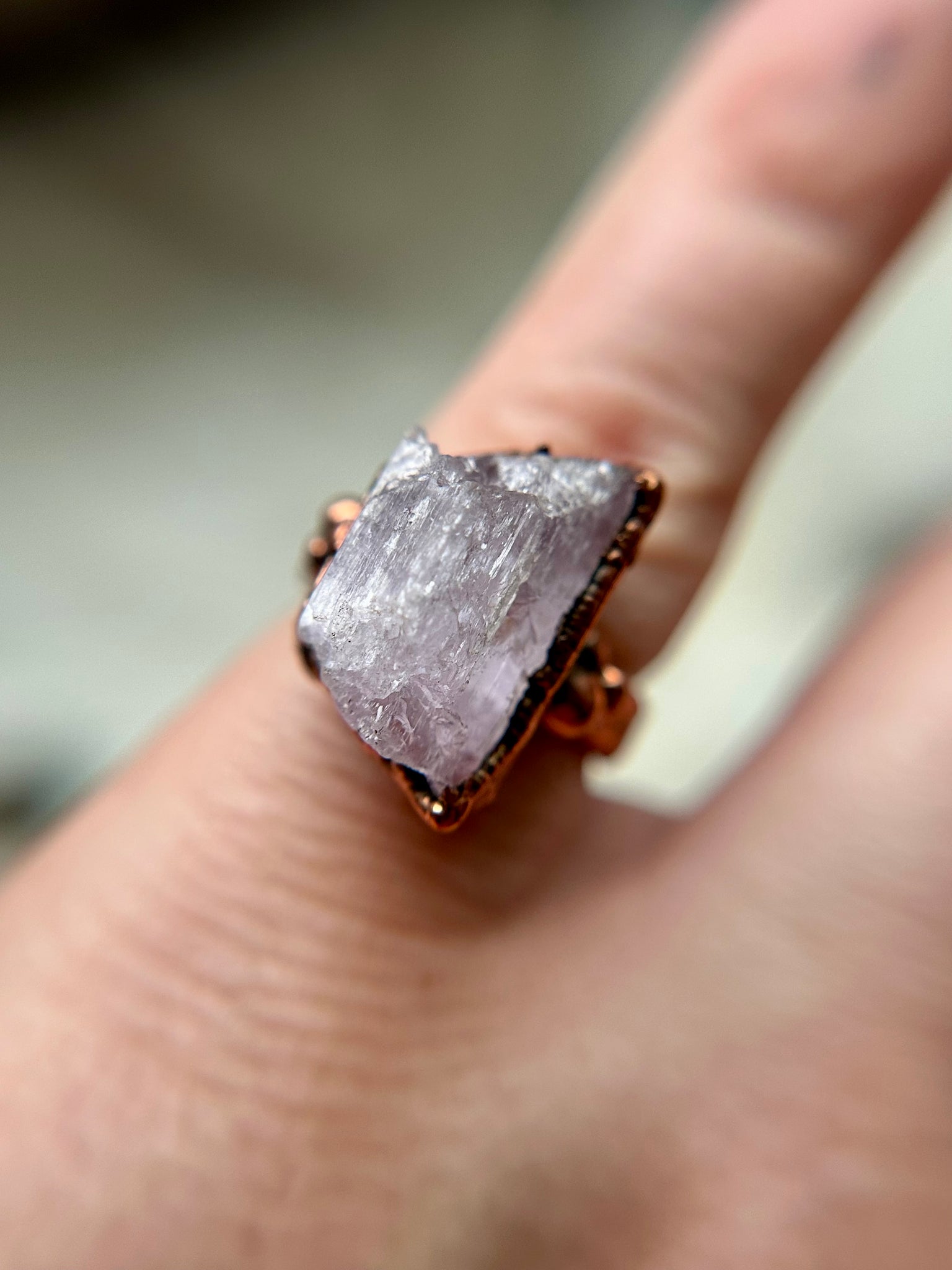 Raw Gemmy Kunzite Copper Ring Size 6.5