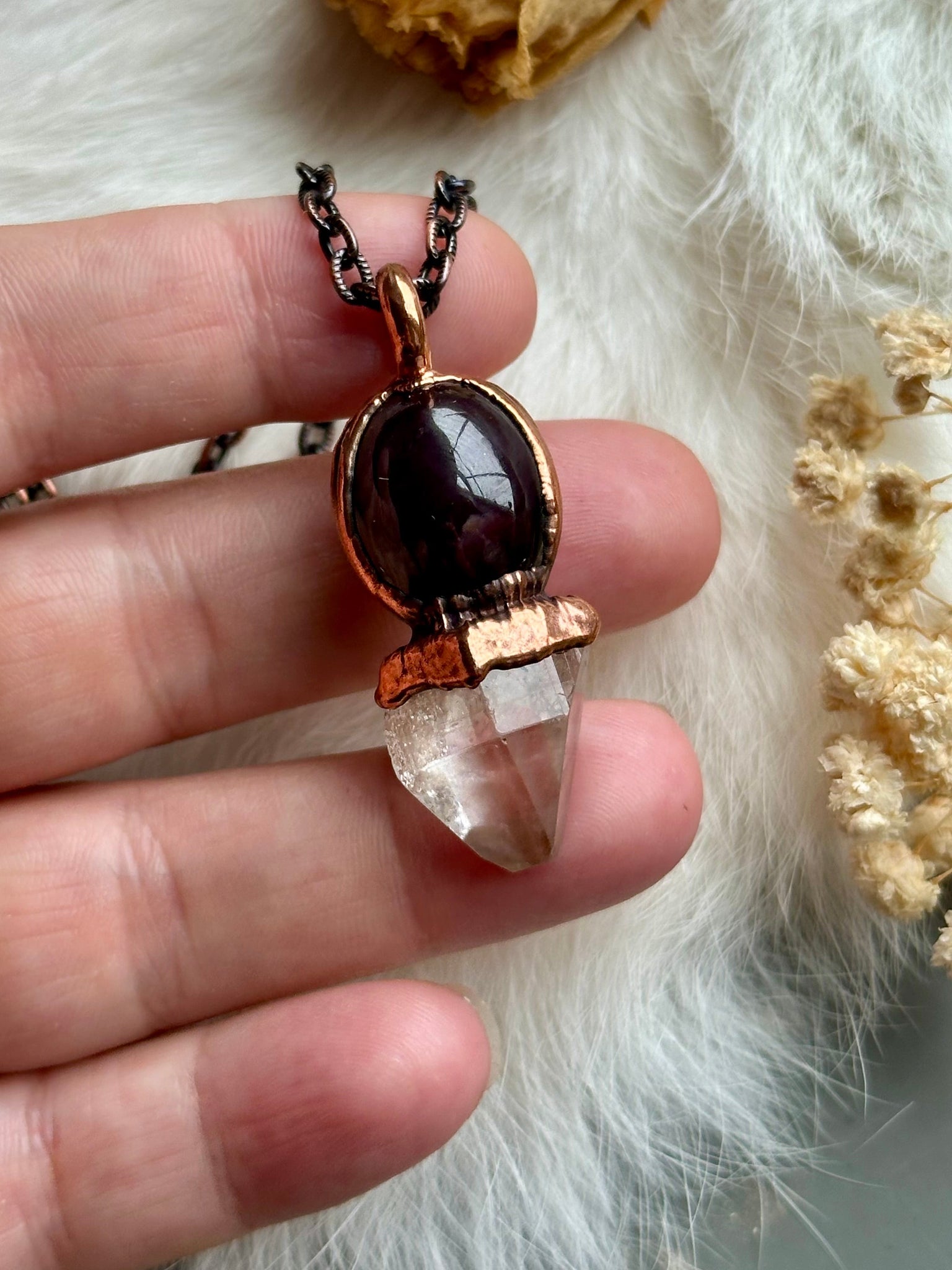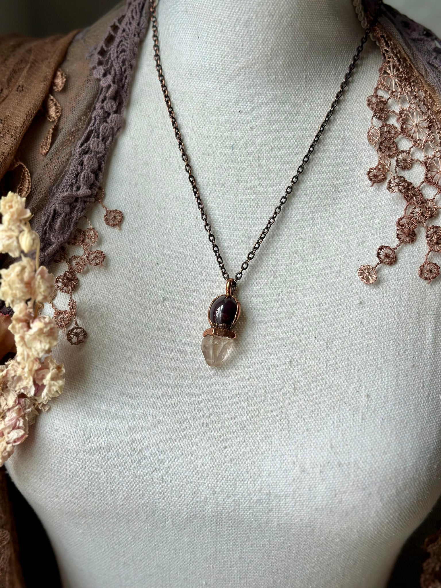 ✨ Star Garnet & Raw Topaz Copper Necklace ✨